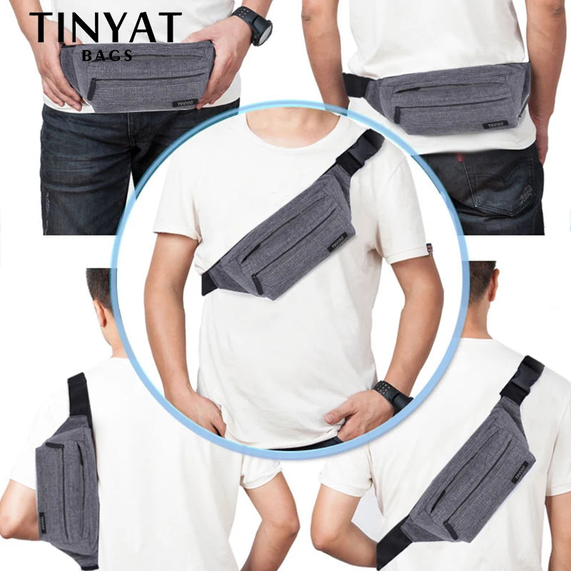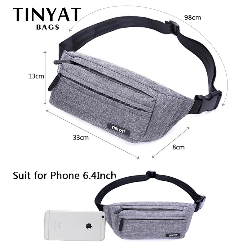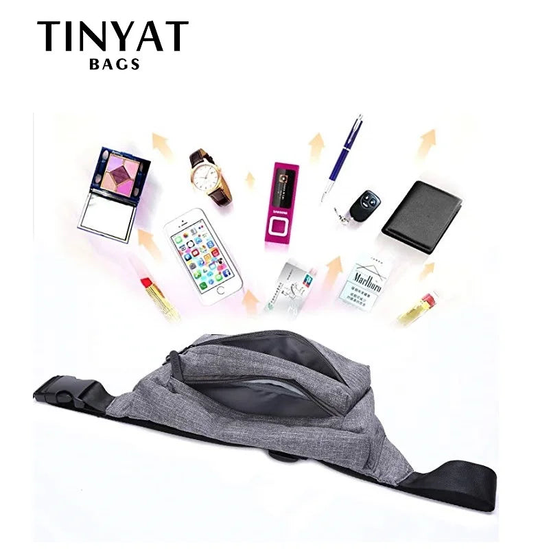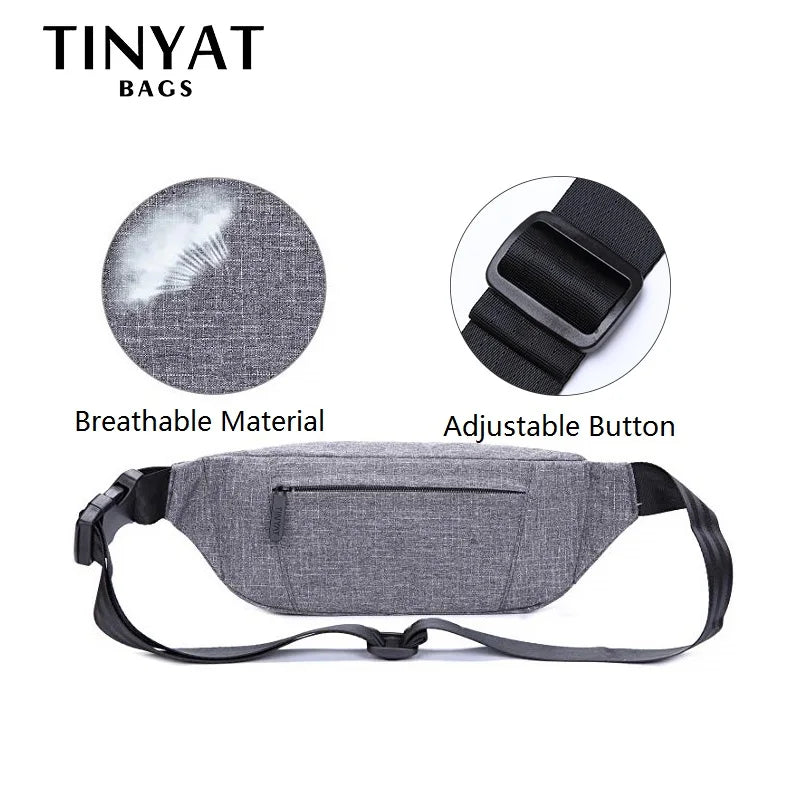 This waist bag is designed for men with a stylish grey color and functional design. It is perfect for carrying your phone, money, and other essentials while on the go.