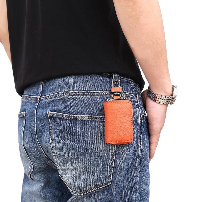 Keep your car keys secure and organized in this leather automobile key pack case. The key holder bag features a mini zipper and clasp for added protection. This waterproof key pack is perfect for storing your car keys.