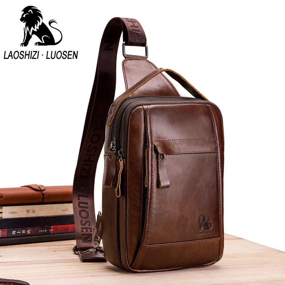 This men's leather chest bag is perfect for carrying essentials on the go. It features a spacious main compartment and adjustable strap for added convenience.