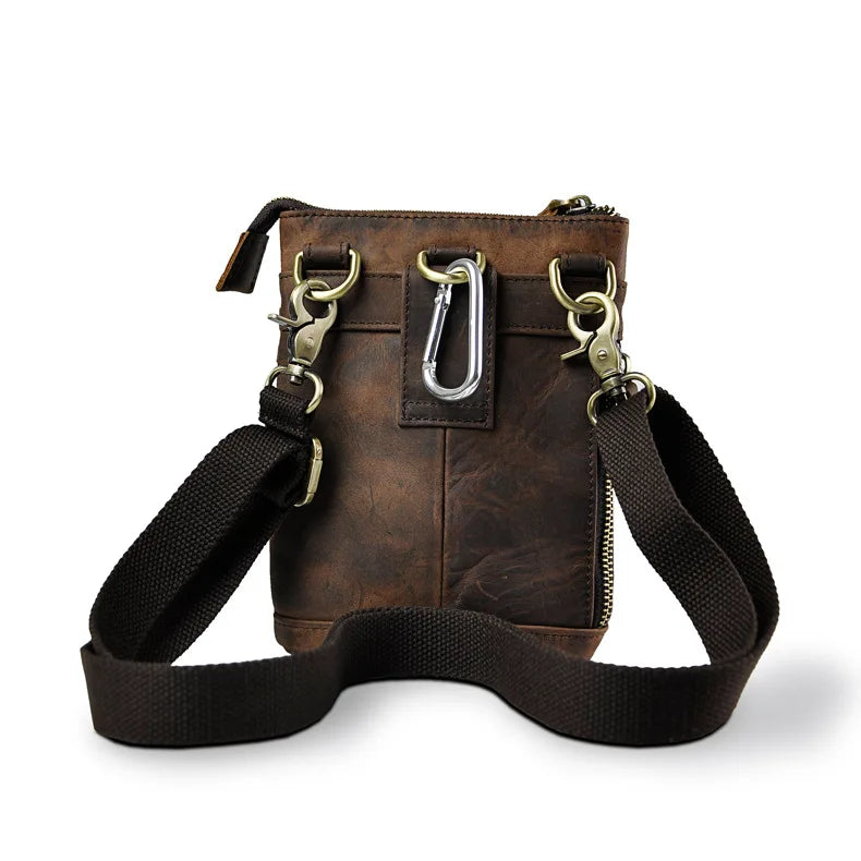 Men Leather Shoulder Satchel Bag Phone Pouch Hook Belt Waist Bag Pack