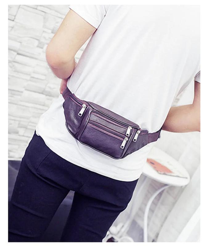 Men Leather Travel Waist Pack Mobile Phone Bag
