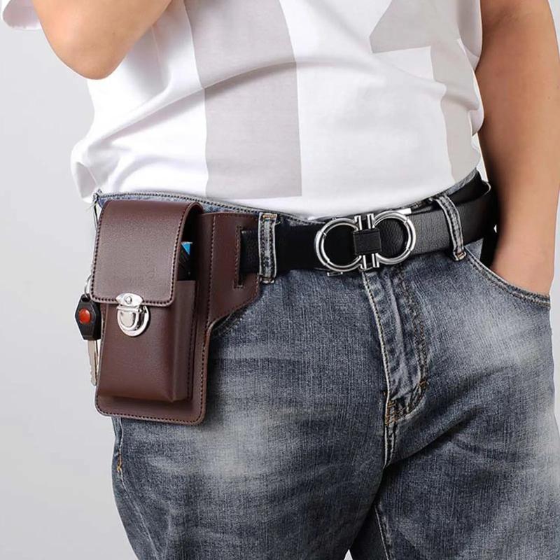 Men Leather Waist Bag Large Capacity Multi-layer Buckle Box Bag