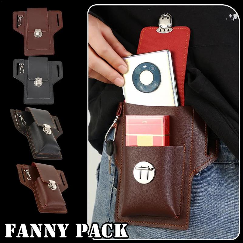 This men's leather waist bag offers a large capacity with multi-layer compartments for organized storage. It features a secure buckle closure and is ideal for holding mobile phones and essentials.