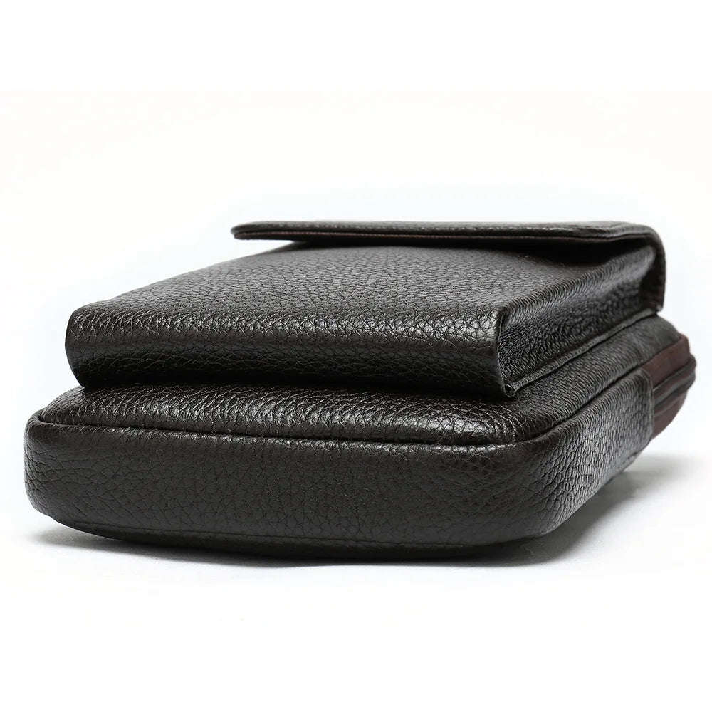 This men's leather waist bag is perfect for outdoor activities and leisure wear. It features multiple pockets for storing essentials and provides convenient access to your mobile phone. The adjustable belt ensures a comfortable fit.