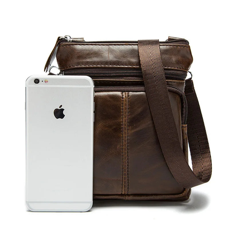 Men Leather Waist Bag Retro Business Casual Shoulder Messenger Bag
