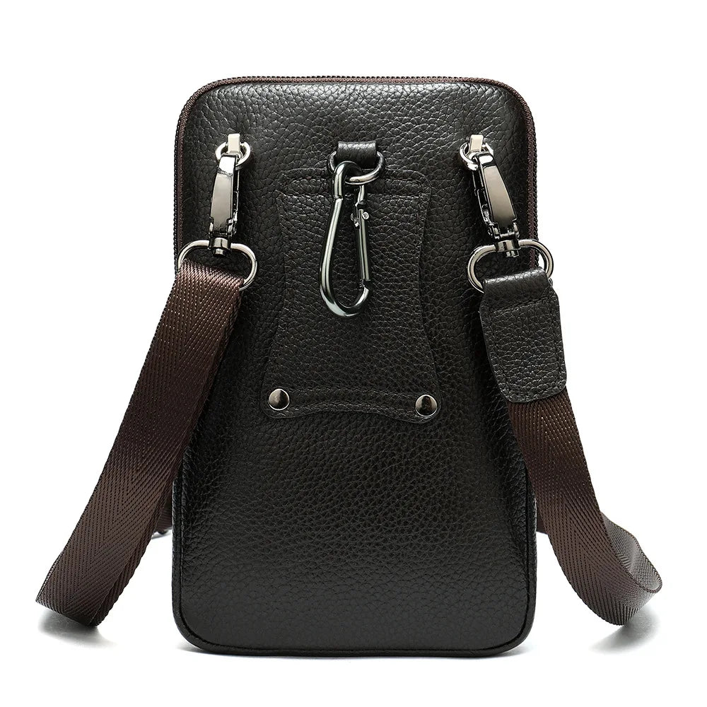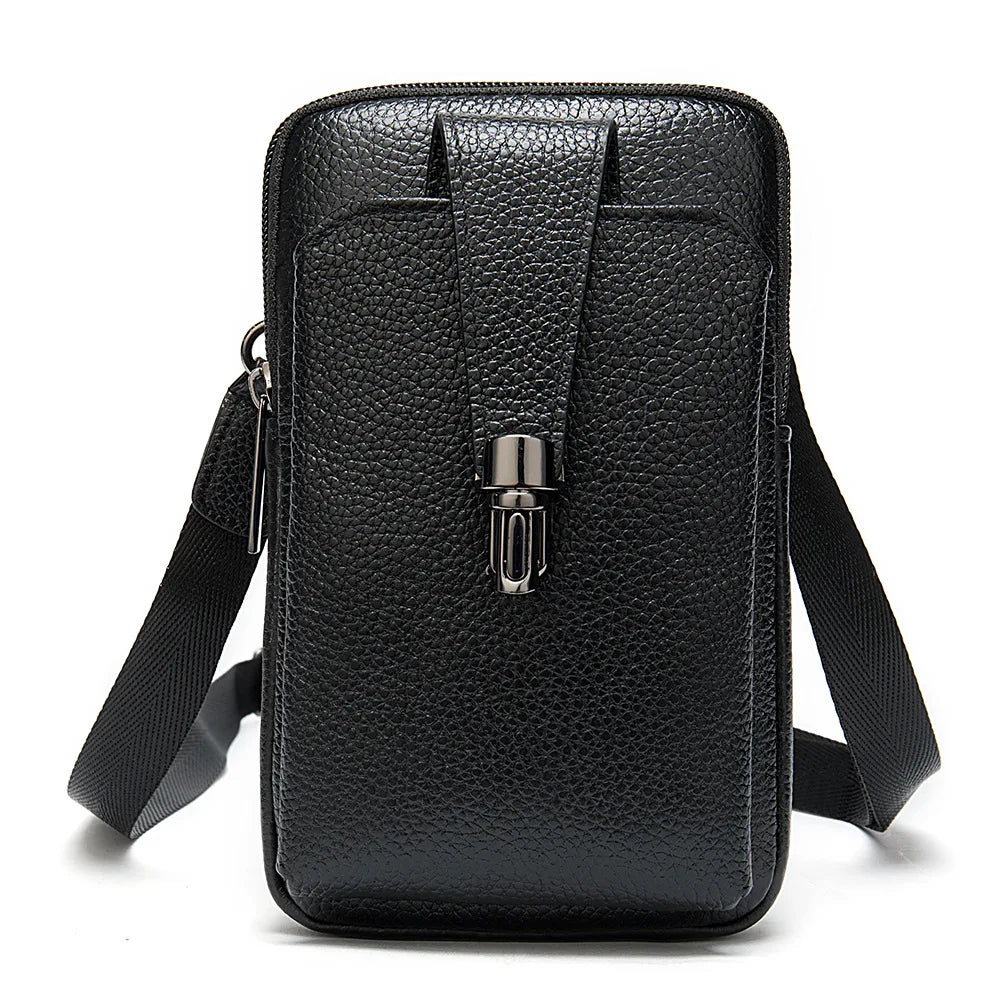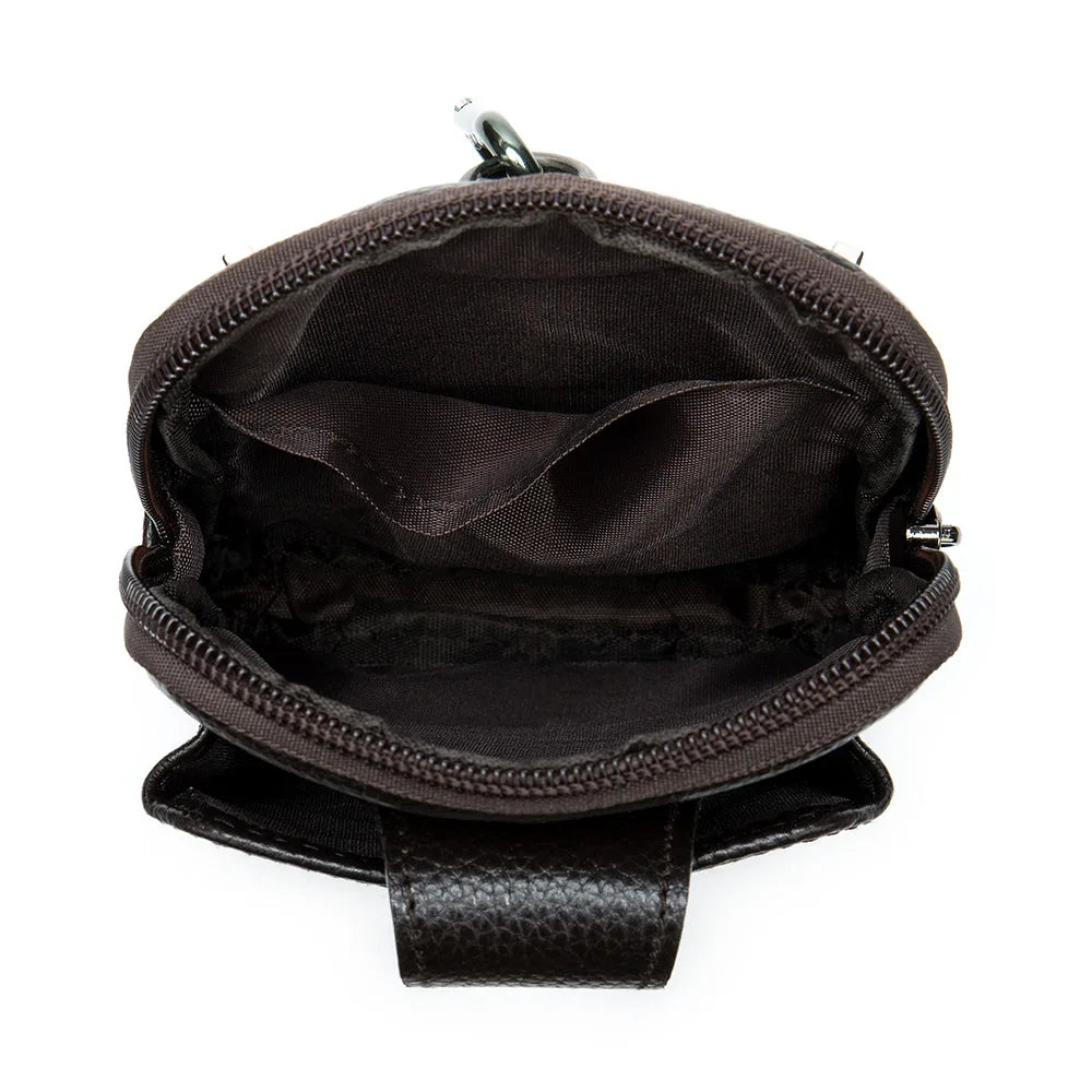 Men Leather Waist Bag Soft Embossed Leather Belt Shoulder Packet