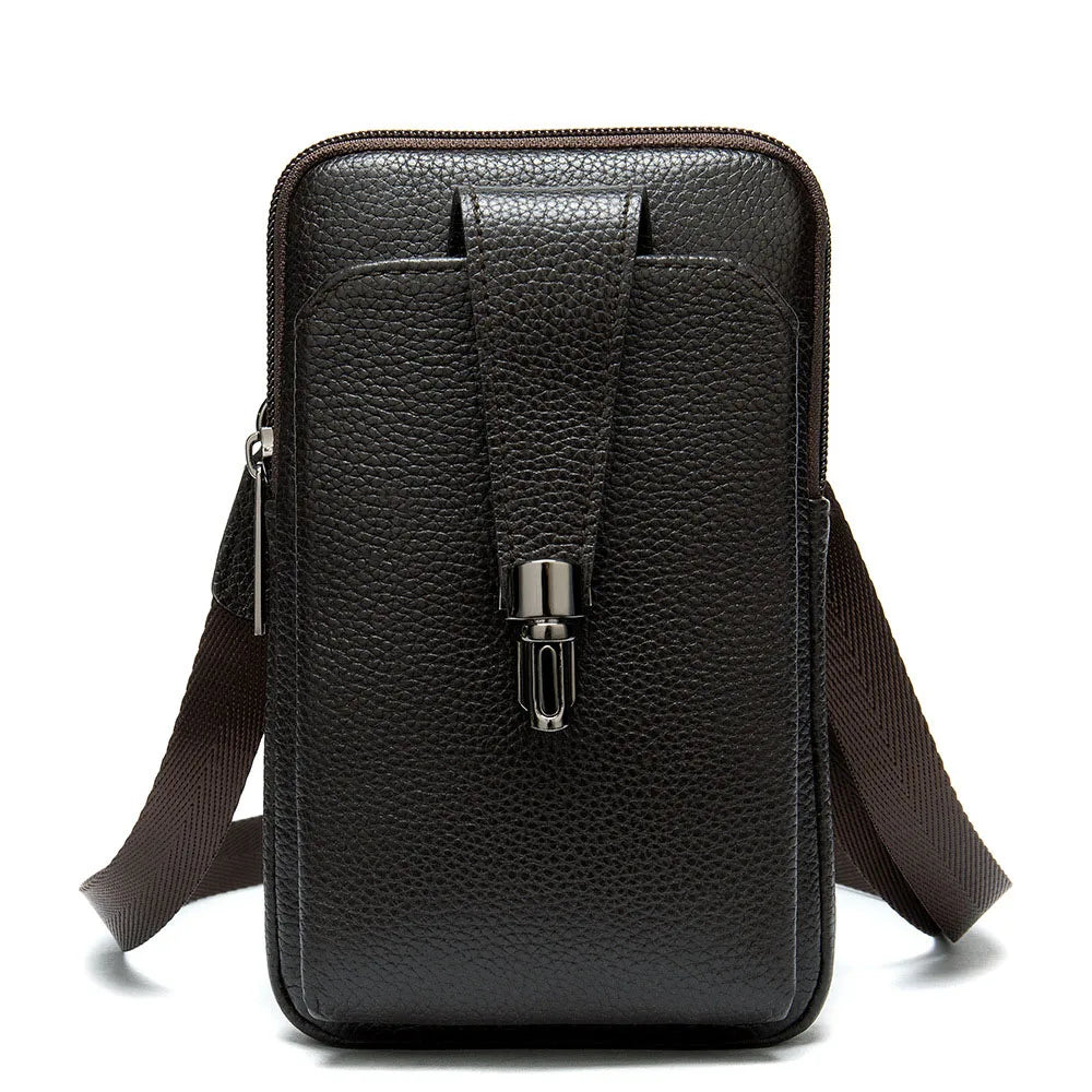 This men leather waist bag is perfect for business use. It is made of soft embossed leather and features a belt for easy wear. The shoulder packet design includes phone pockets for convenient storage.