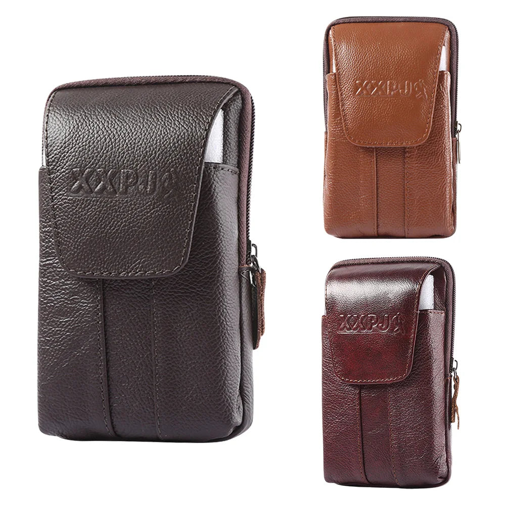 This men leather waist bag is perfect for travel, business, or casual use. It features a mobile phone purse pocket and a belt for easy carrying.