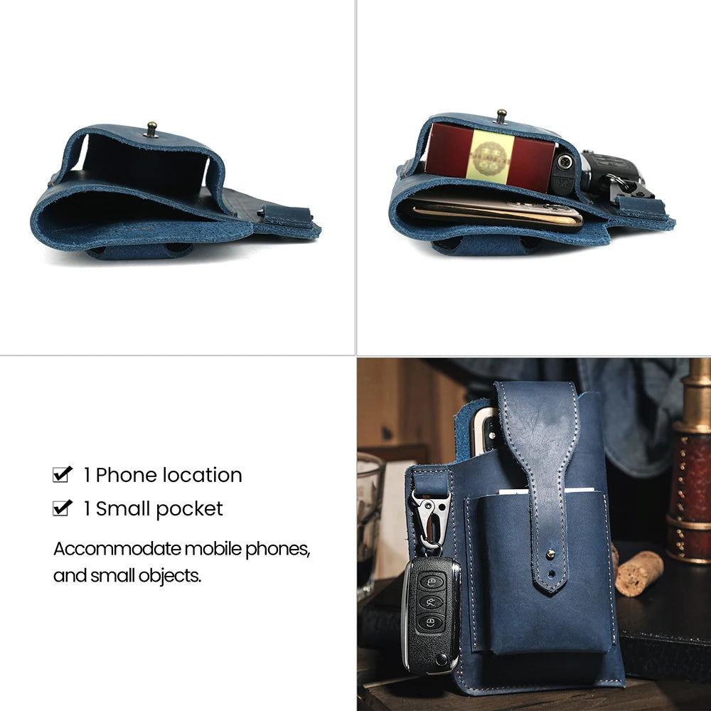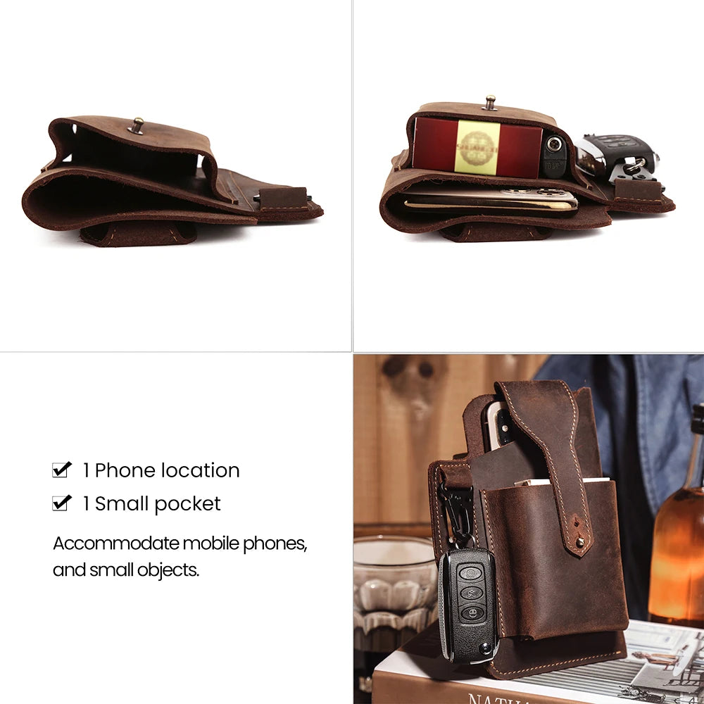 Men Leather Waist Pack Retro Phone Bag Multifunctional Belt Pockets