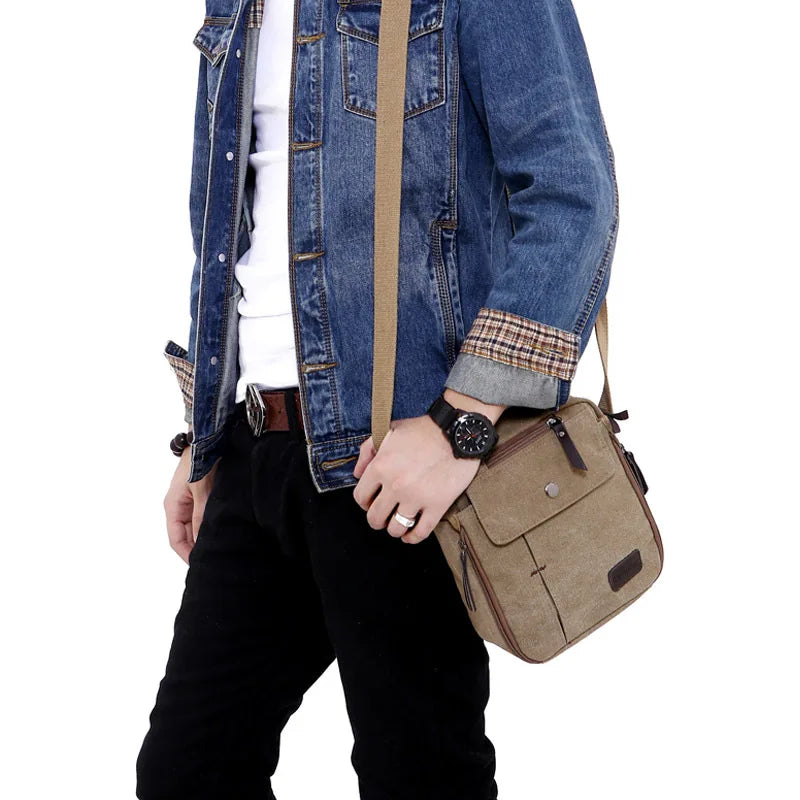 This military-inspired messenger bag is perfect for outdoor activities. Made of durable canvas material, it offers multiple functions and ample storage.