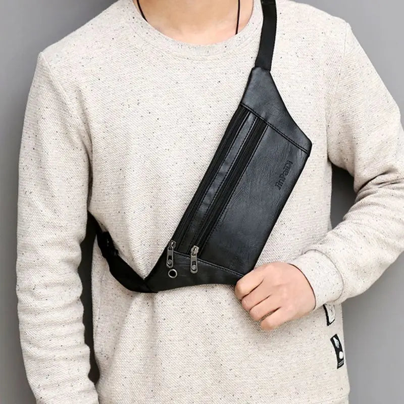 Men PU Leather Belt Bum Waist Phone Pouch Fanny Pack Crossbody Shoulder