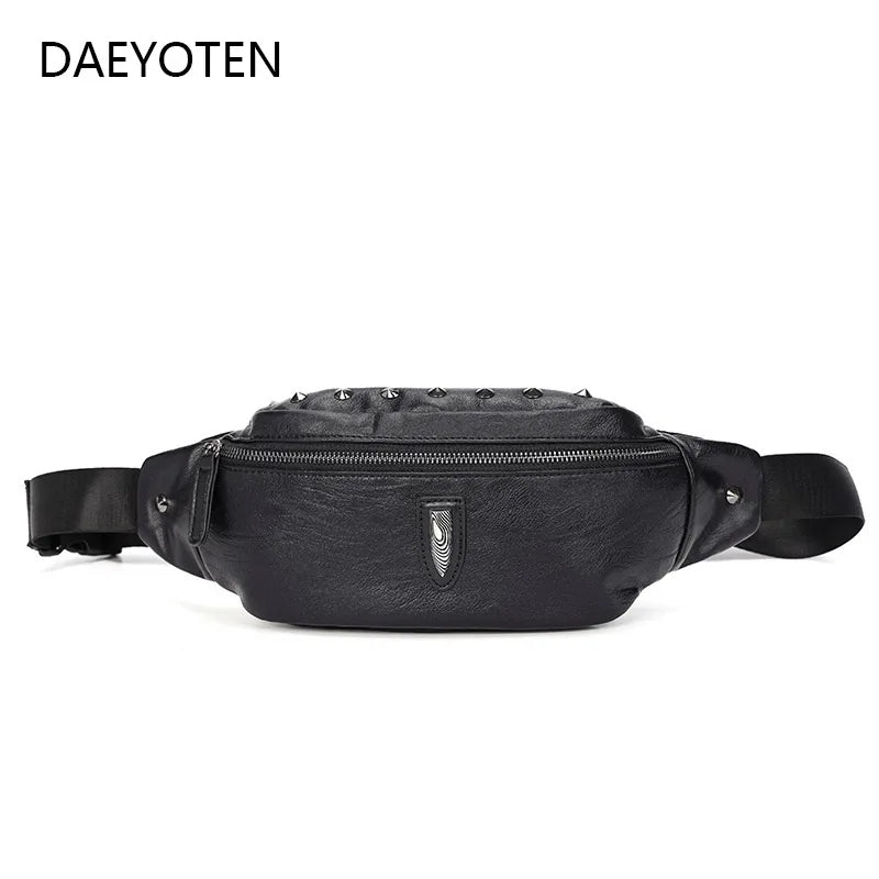 Men Rivet Waist Bag Chest Bag Unisex Fanny Pack Soft Leather Kidney Purse