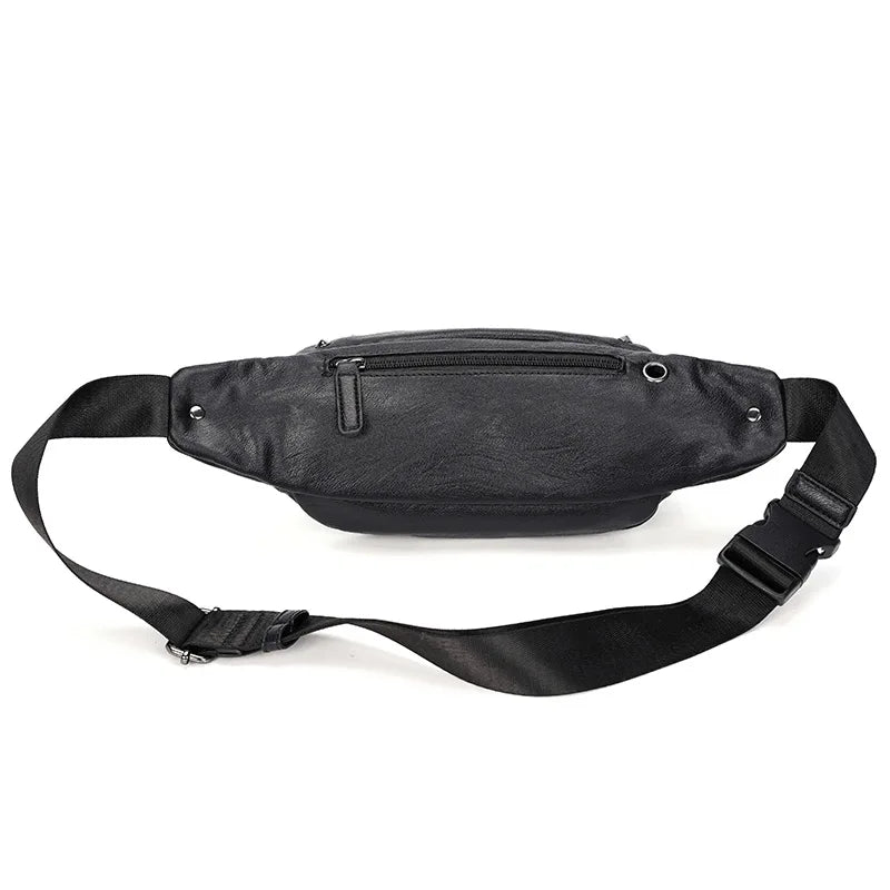 This waist bag is designed for both men and women, made of soft leather with rivet detailing. It is perfect for carrying essential items while on the go.
