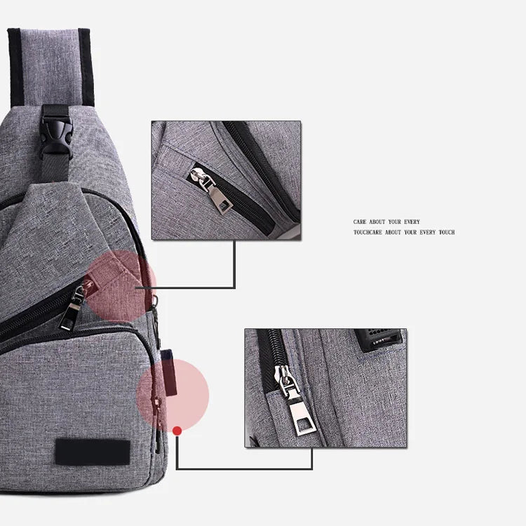 Stay organized and secure while on the go with this men's shoulder bag featuring a USB charging port, anti-theft design, and waterproof material. Perfect for travel and everyday use.