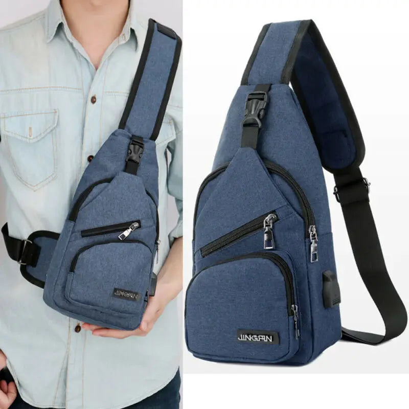 Men Shoulder Bags USB Charging Crossbody Bags Anti Theft Chest Bag