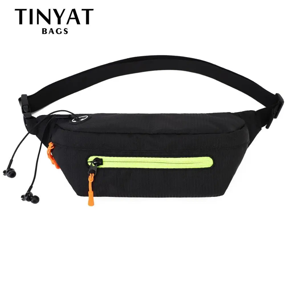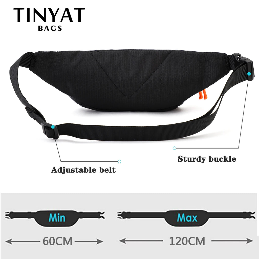 This waist bag is made of canvas material and features 5 pockets for storing your belongings. It's perfect for casual outings or travel.