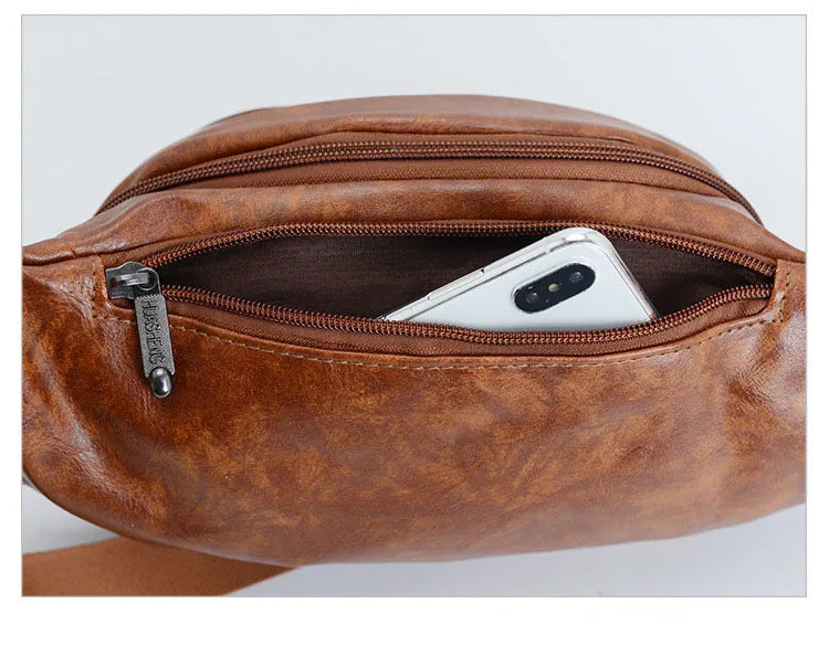 This leather waist pack is perfect for men on the go. It provides a convenient way to carry your phone and other essentials without having to worry about holding them. The adjustable belt ensures a comfortable fit for all sizes.