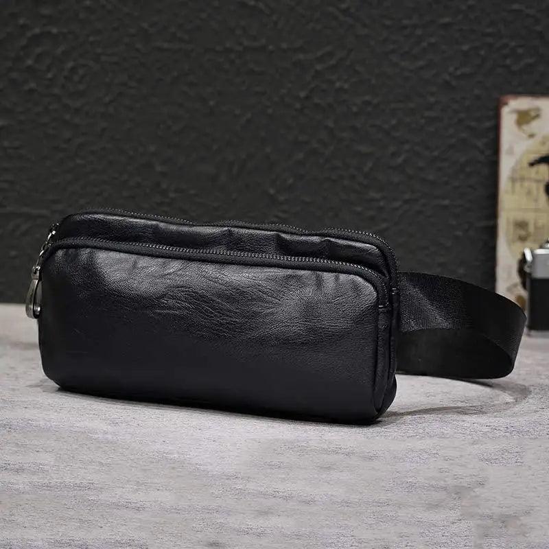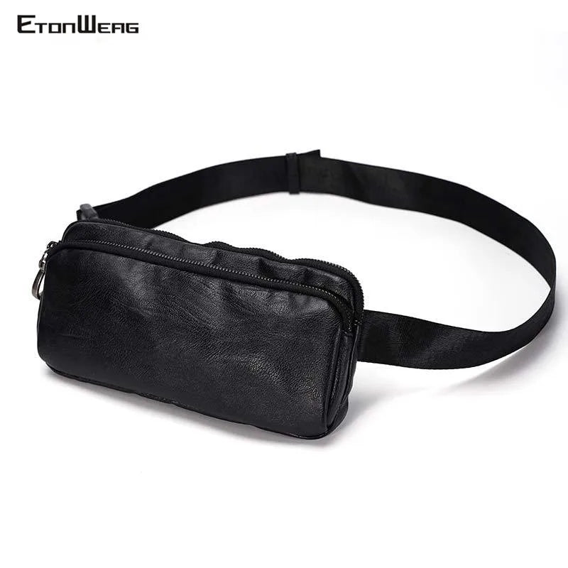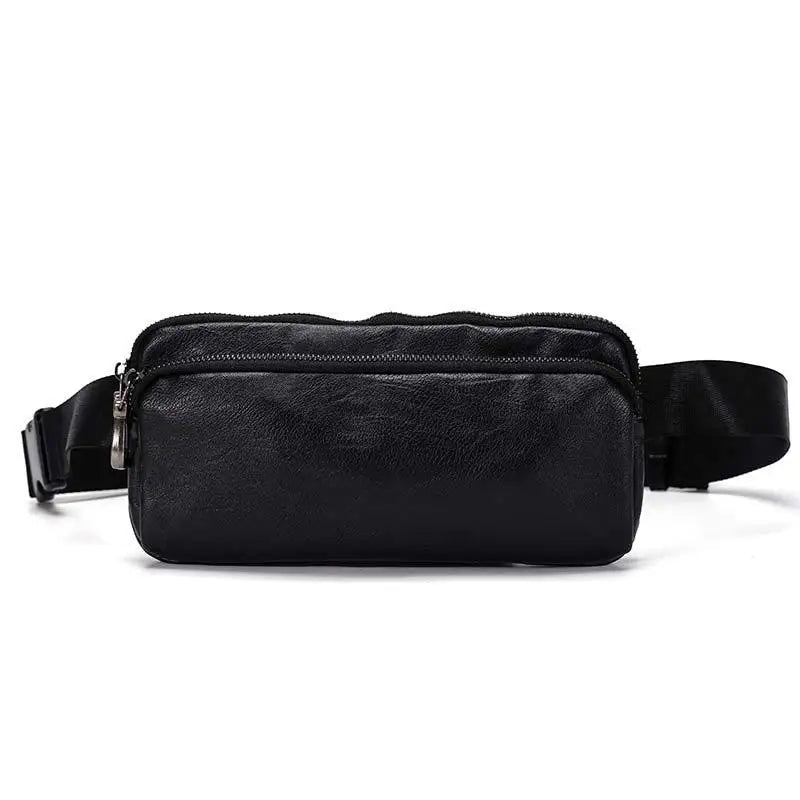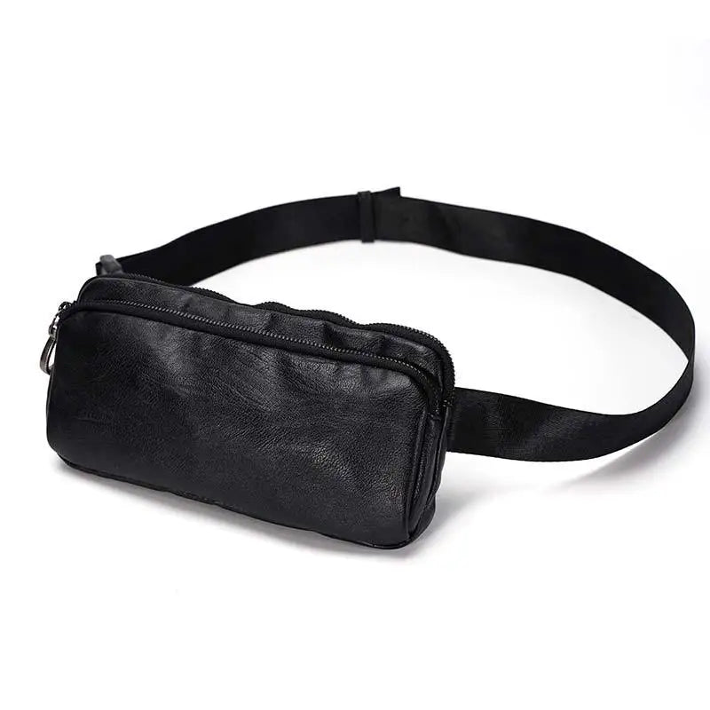 Men's Casual Chest bag PU Leather Waist bag Small Double zipper Messenger Bag