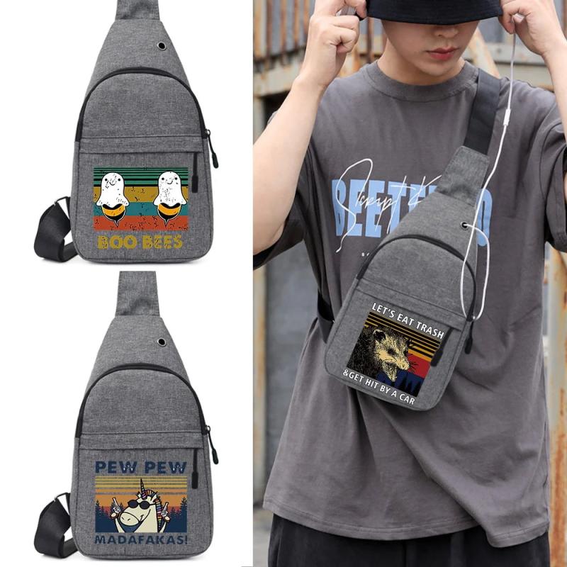Men's Chest Bag Pew Print Outdoor Sport Travel Messenger Bag