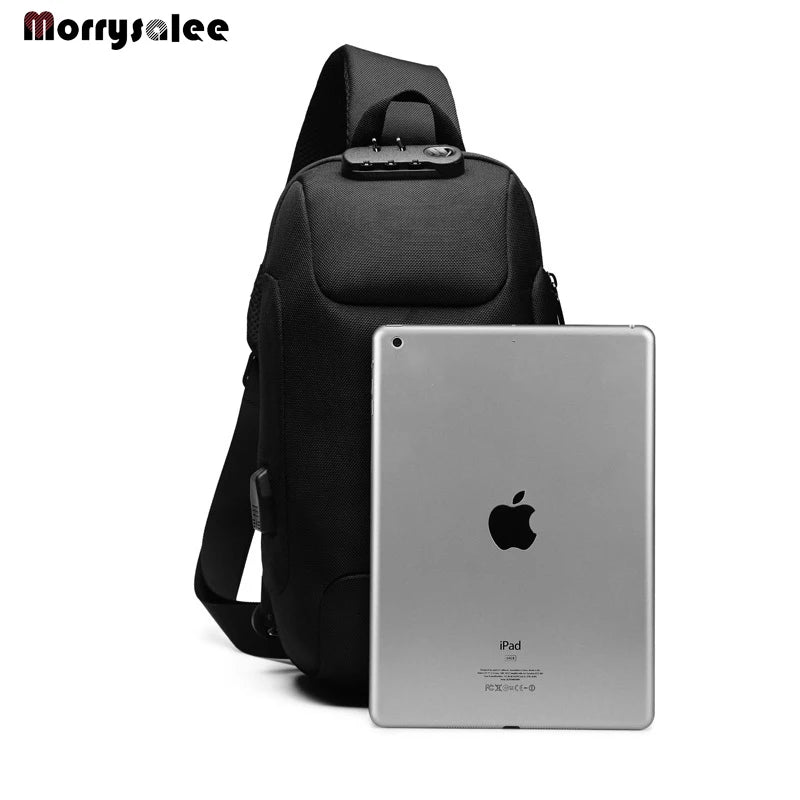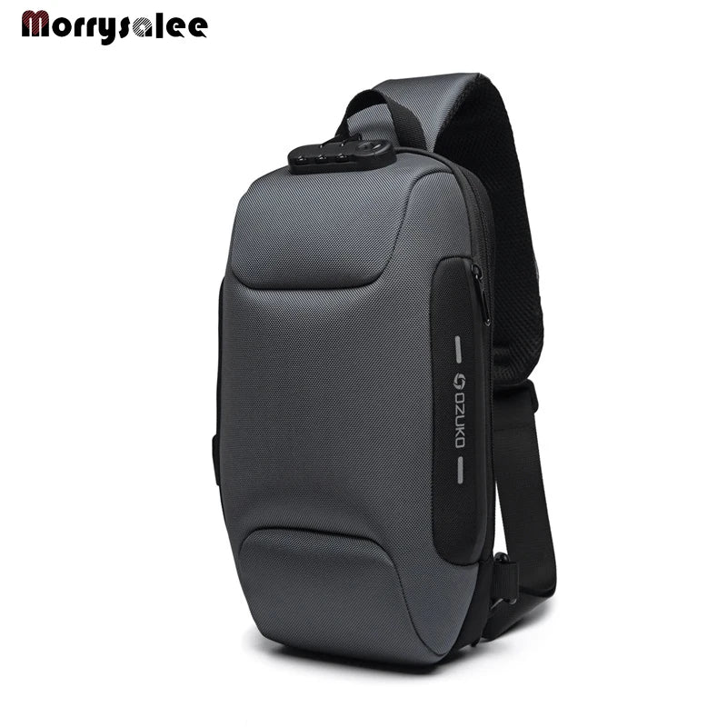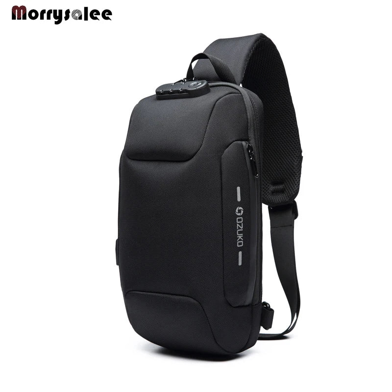 Stay organized with this men's chest pack that features multiple compartments and a USB port. Made of durable waterproof Oxford cloth, this casual yet functional bag is perfect for everyday use.