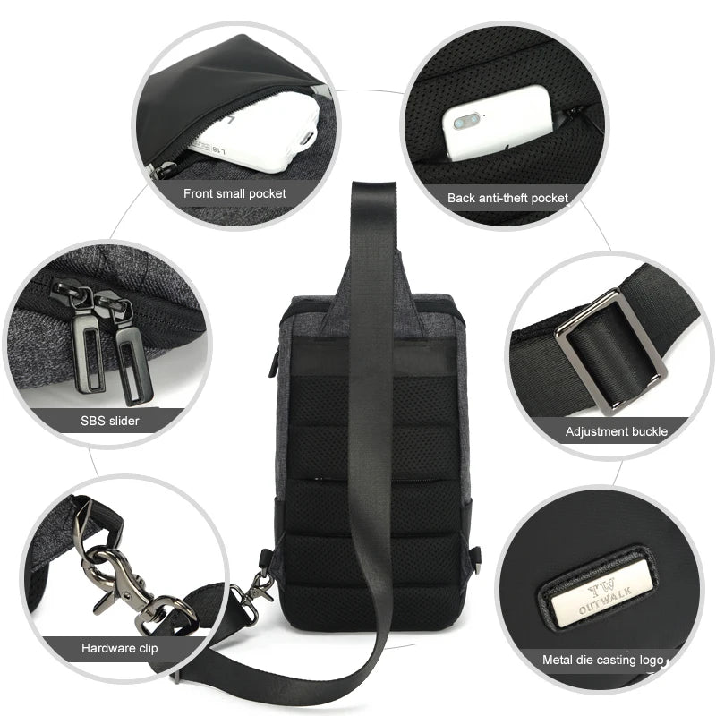 Men's Crossbody Bags USB Chest Bag Messenger Bag Nylon Shoulder Bags