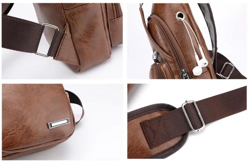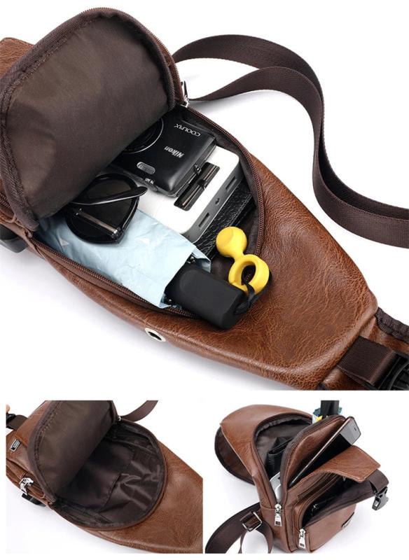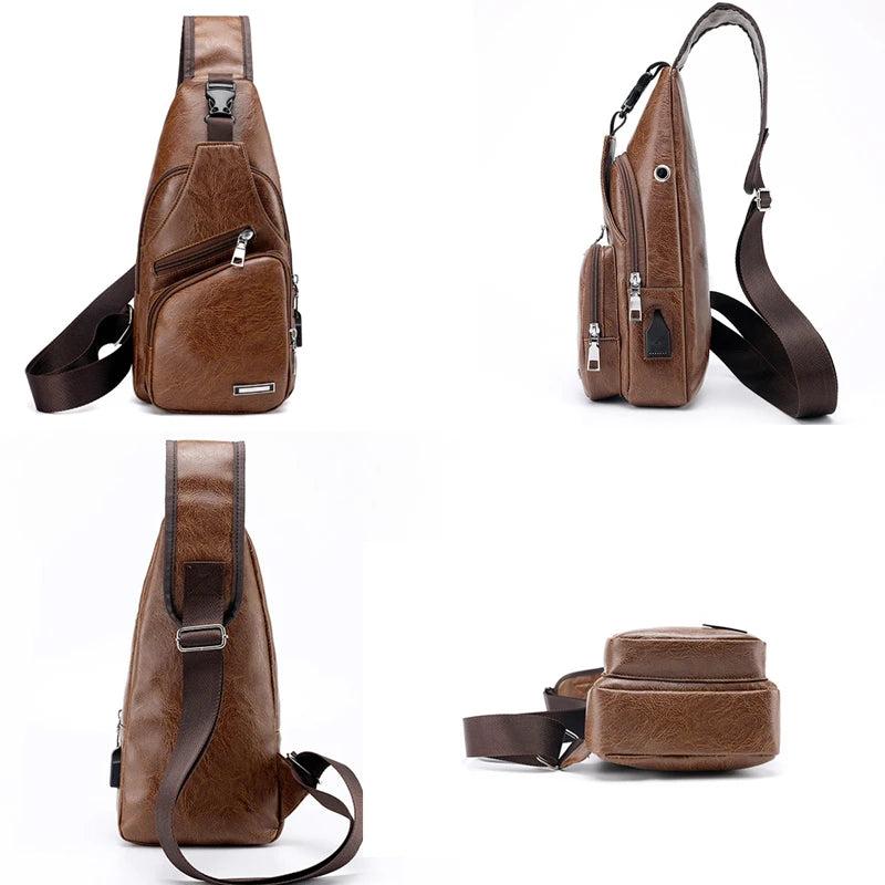 Men's Crossbody Bags USB Chest Bags Messenger Leather Shoulder Bags