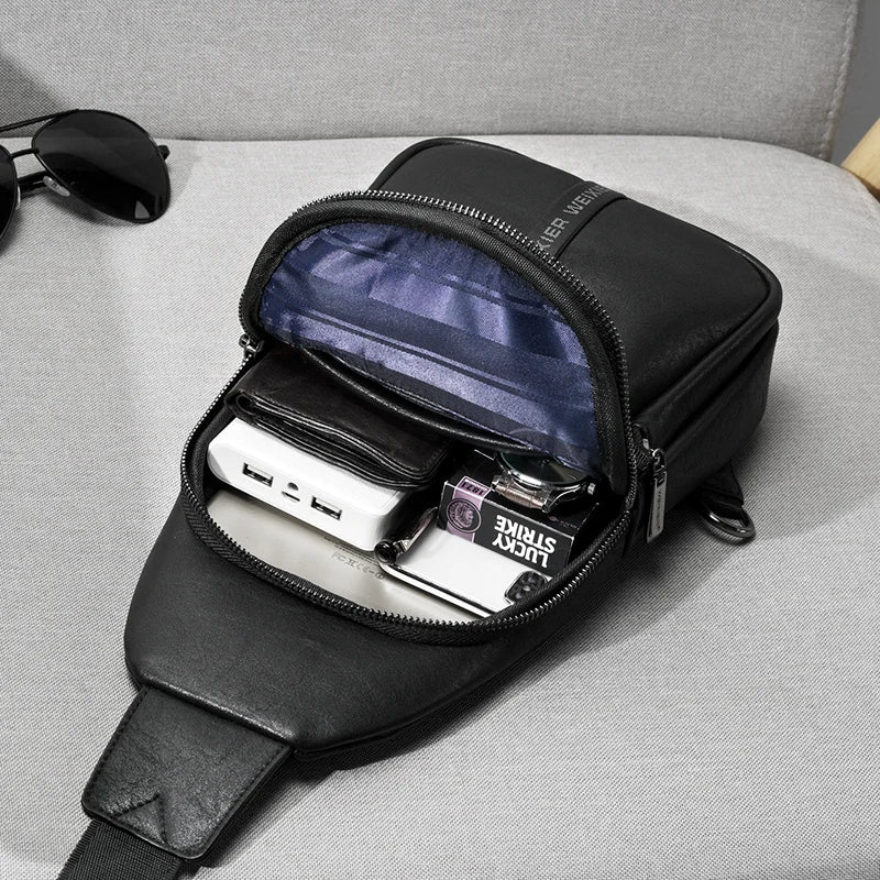 Men's Crossbody Messenger Chest Bag Waterproof PU Shoulder Pack