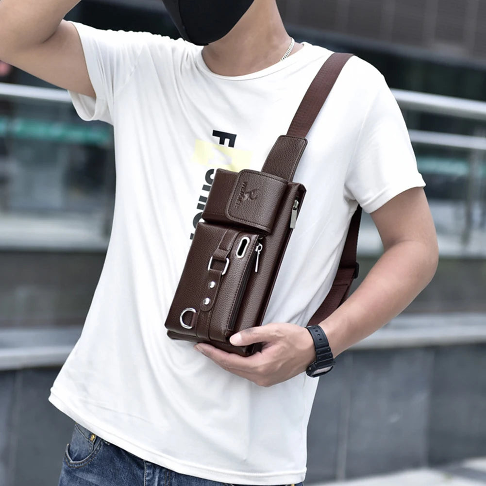 Men's Crossbody Shoulder Bag PU Leather Chest Bags