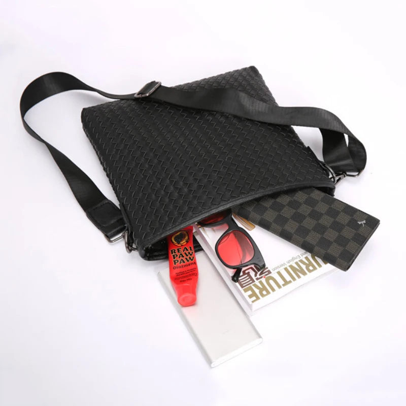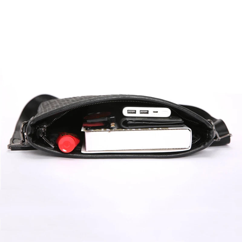 Men's Crossbody Sling Bag Weave PU Leather Messenger Bag