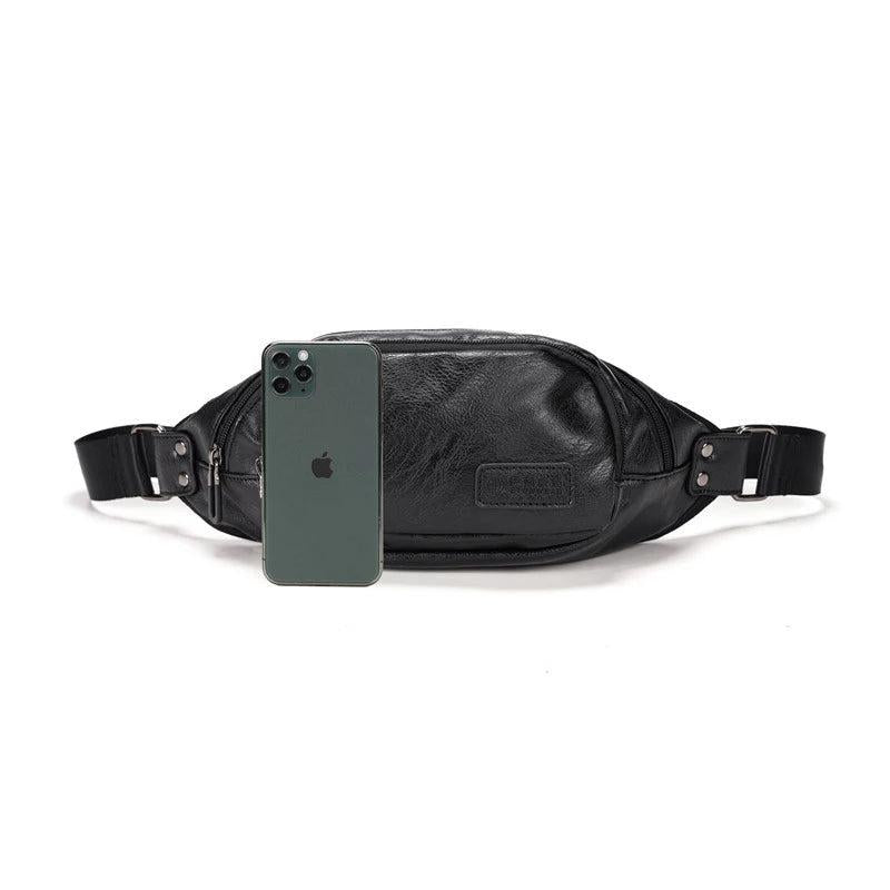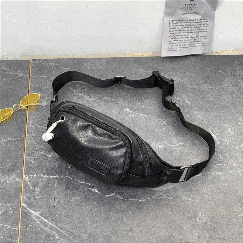 Men's Leather Fanny Pack Chest Bag Outdoor Travel Waist Bum Pack Waterproof