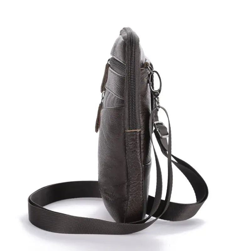 This versatile bag is crafted from high-quality leather, offering durability and style. It features multiple compartments for storing your phone, wallet, keys, and more.