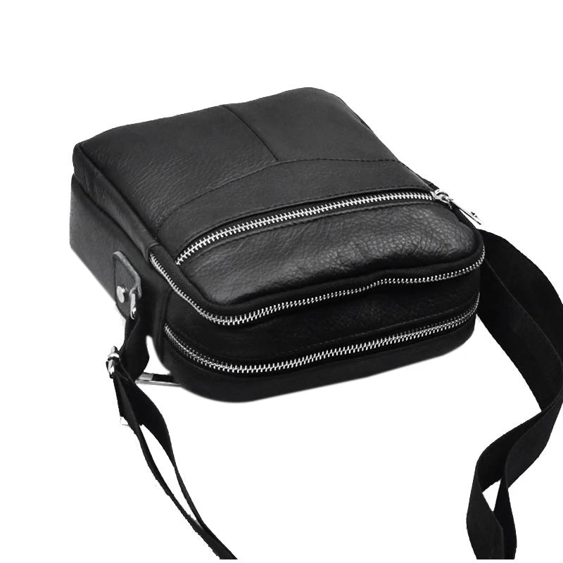 Stay organized and stylish with this men's leather shoulder bag. It features dual zipper compartments and a casual design for everyday use.