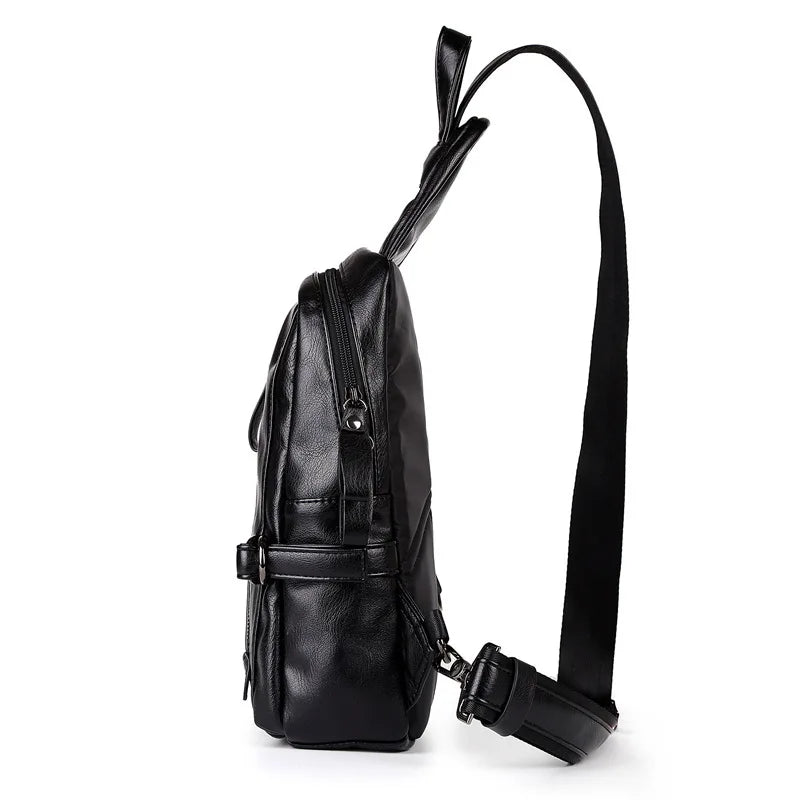 This stylish men's sling bag is made of soft leather, providing a waterproof and durable solution for carrying your essentials.