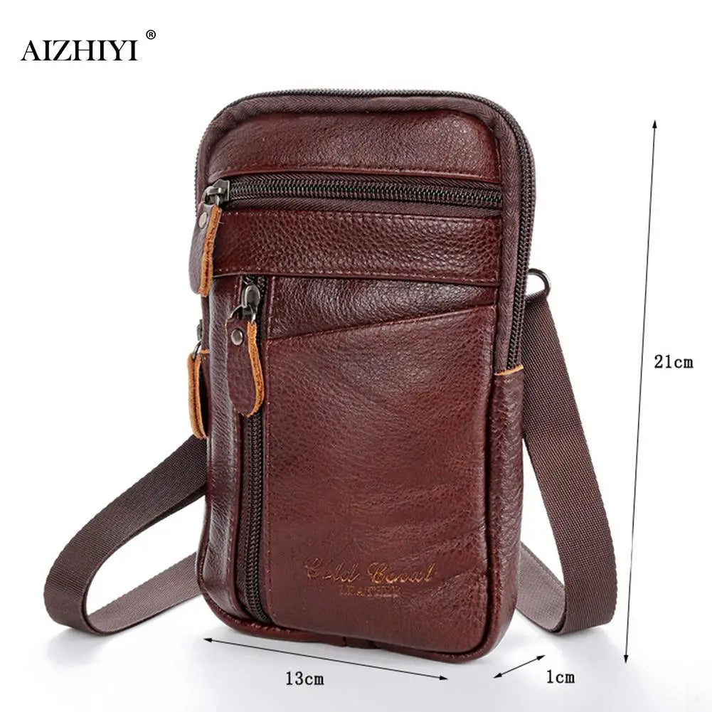 Men's Leather Waist Pack Phone Pouch Bag Chest Shoulder Belt Bag