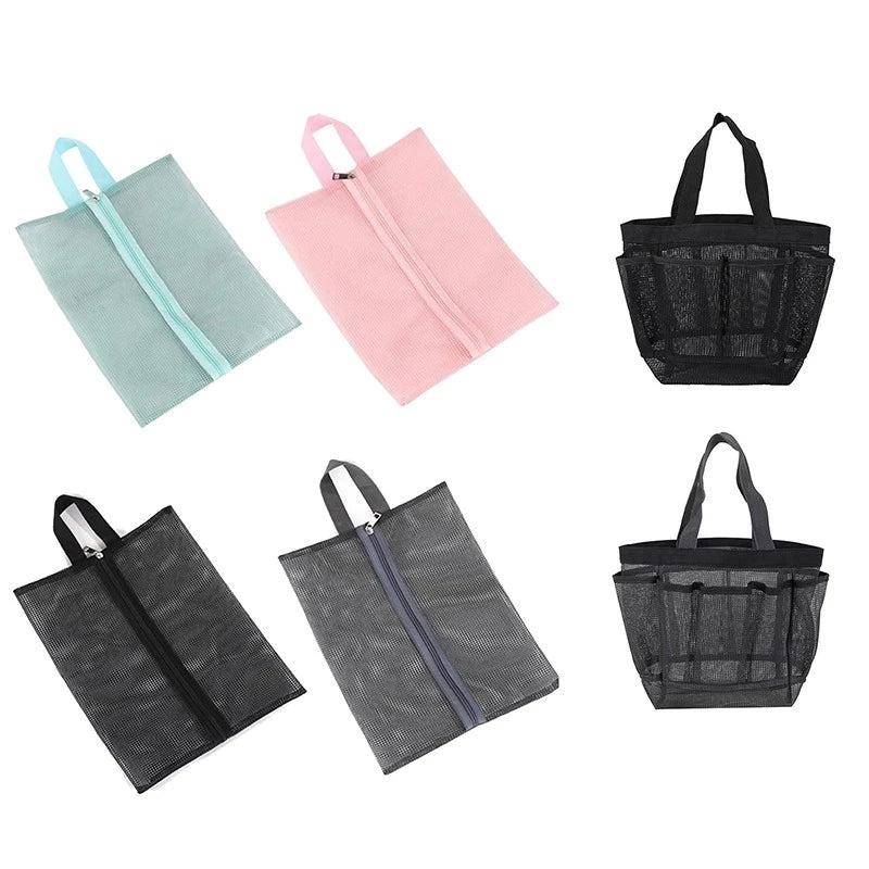 Keep your shower essentials organized with this quick-dry mesh shower caddy. It features 7 storage pockets, double handles, and a portable design for easy carrying.