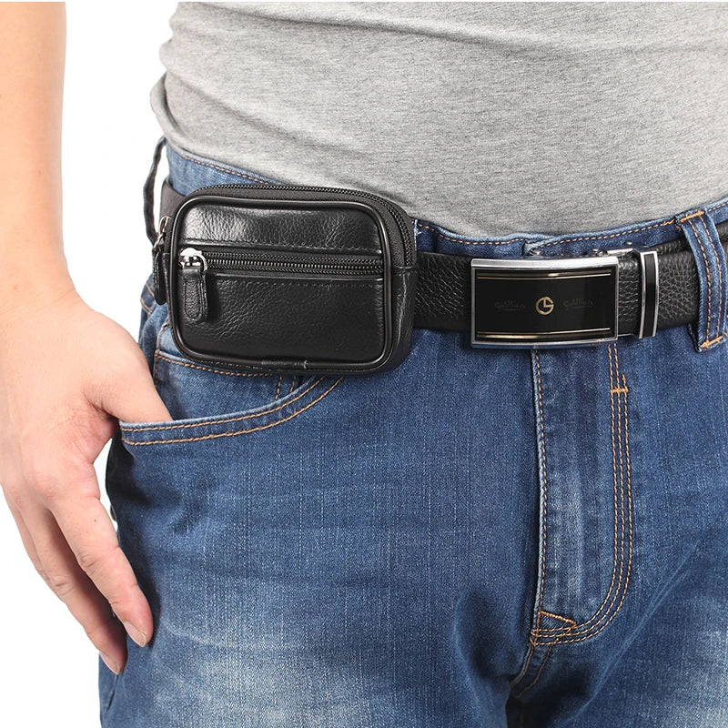 Men's Mini Belt Bag Cowhide Waist Fanny Pack