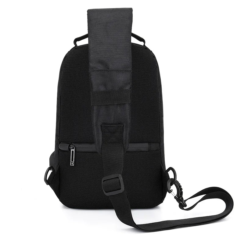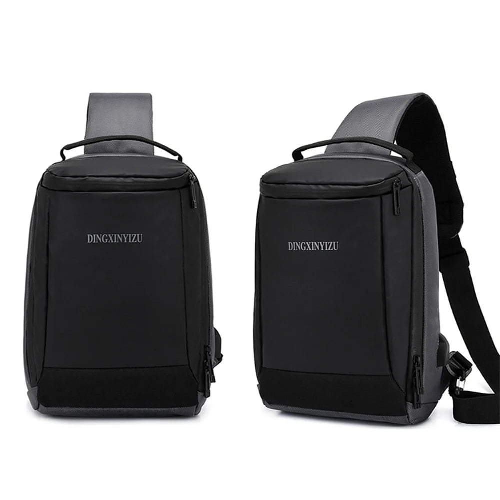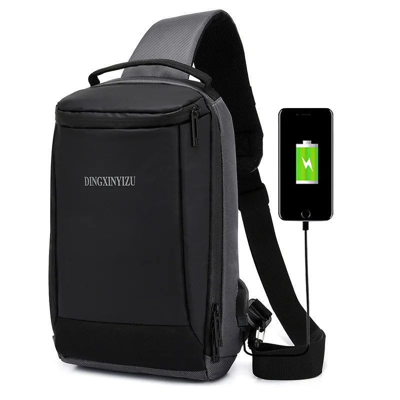 Stay organized and stylish with this canvas chest bag that includes a USB charging port for convenience.