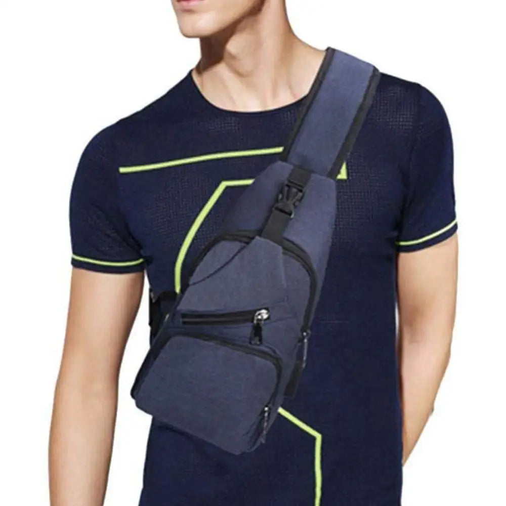 Men's Outdoor Crossbody Shoulder Chest Pouch with USB Charge Port