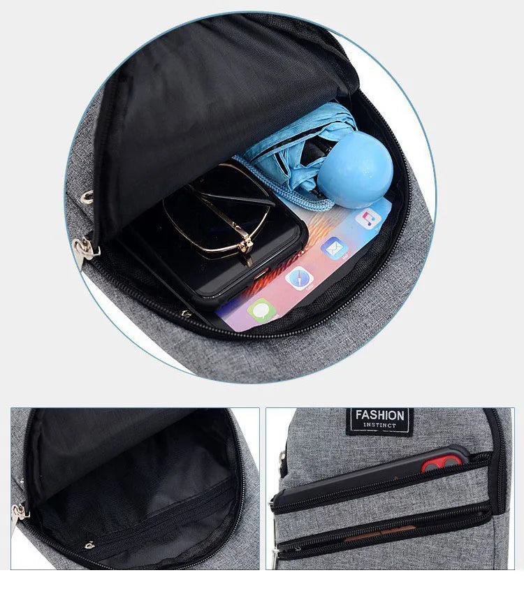 Stay organized on-the-go with this casual Chest Bag for Men made of durable Oxford fabric. Features a USB charging port for convenience. Ideal for everyday use and travel.