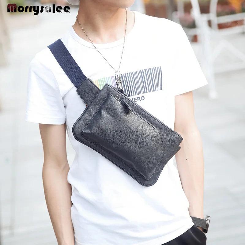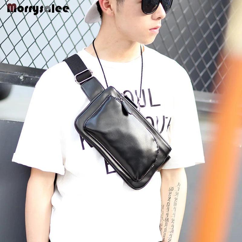 Men's PU Leather Chest Bag Waterproof Military Waist Pouch