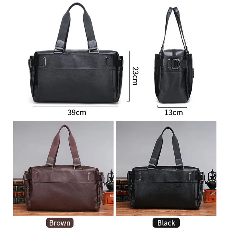 Men's PU Leather Travel Duffle Bag Business Trip Shoulder Bag