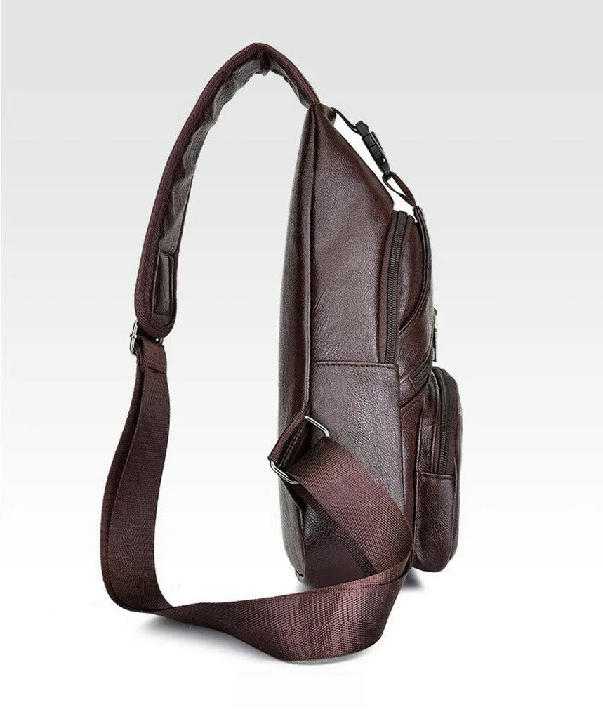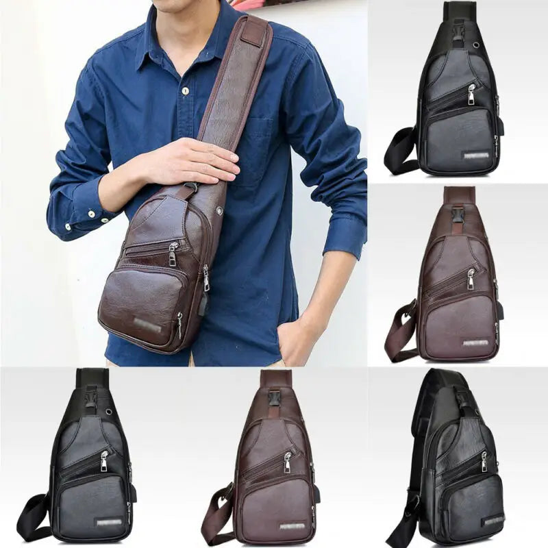 Men's PU Shoulder Bag Sling Chest Pack USB Charging Sports Crossbody Waist Packs