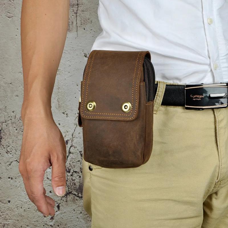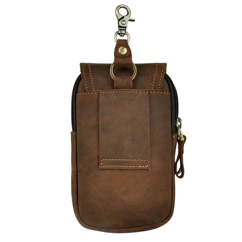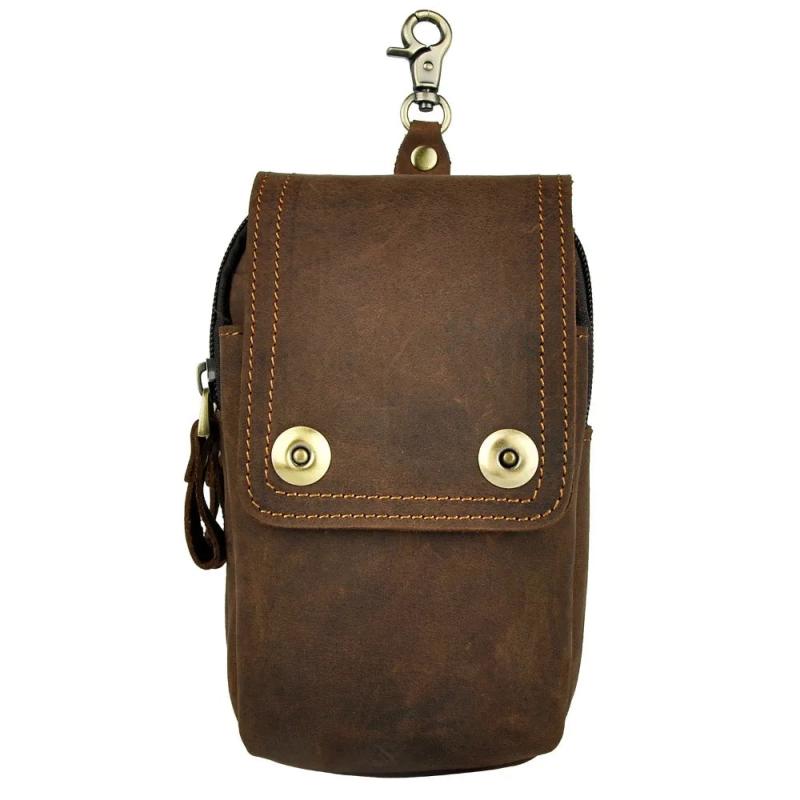 Men's Real Leather Waist Bag Hook Belt Pack Cigarette Phone Pouch