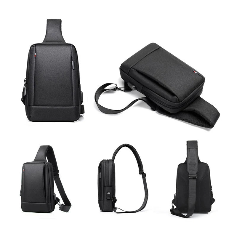 Stay organized and secure with this multifunctional men's shoulder bag. Perfect for short trips, it features a USB charging port and anti-theft design.