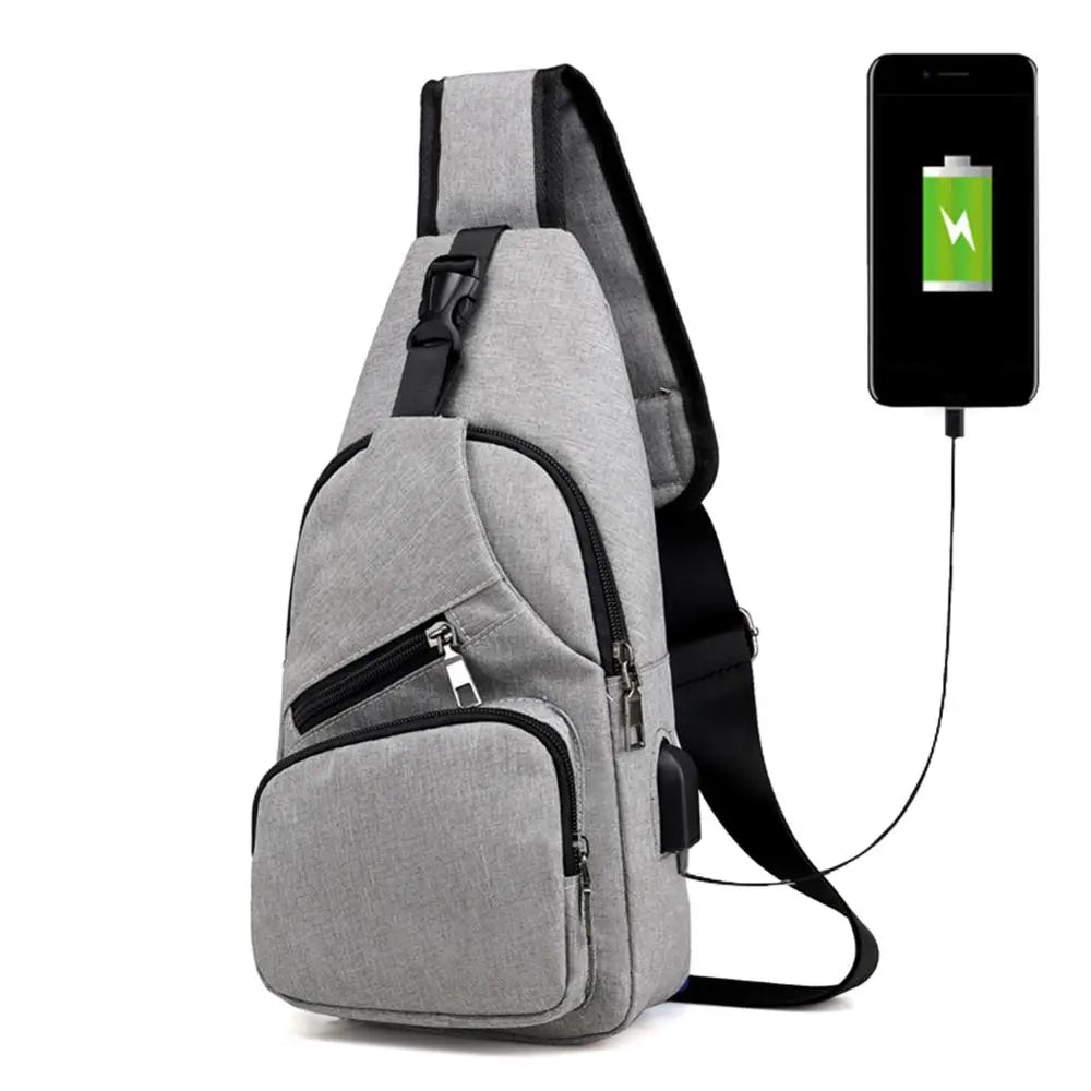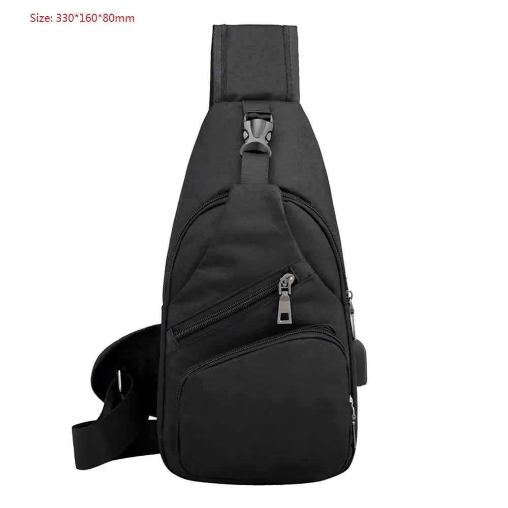 Men's Sling Chest Pack Crossbody Bag USB Charging Messenger Canvas Shoulder