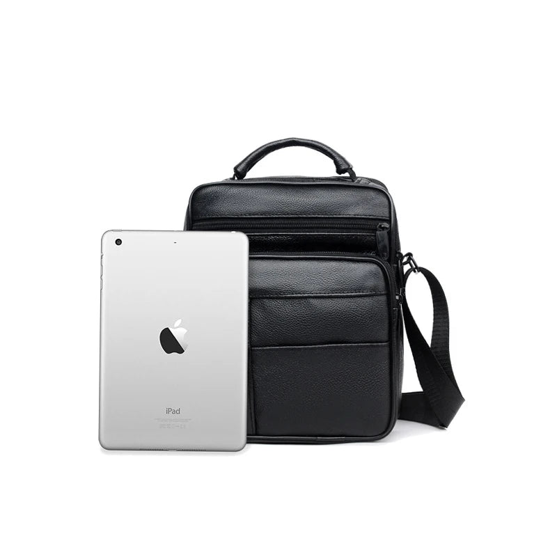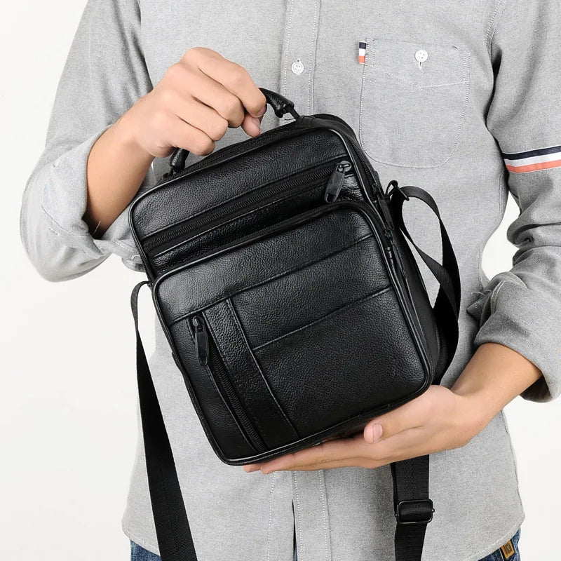 Men's Split Leather Mini Crossbody Bag Business Small Shoulder Messenger Bag