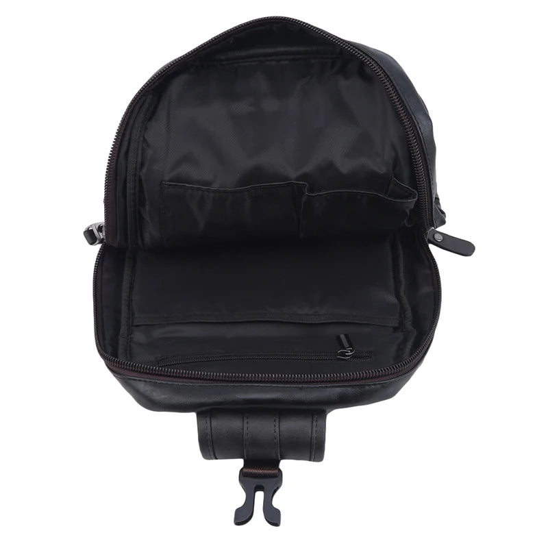 Stay organized and stylish with this men's crossbody chest bag featuring USB charging and headphone plug. Made of high-quality leather, it's perfect for everyday use.