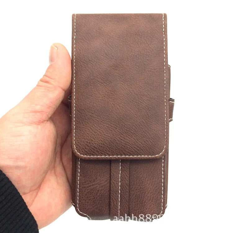 Men's Vertical Waist Leather Bag with Phone Pocket