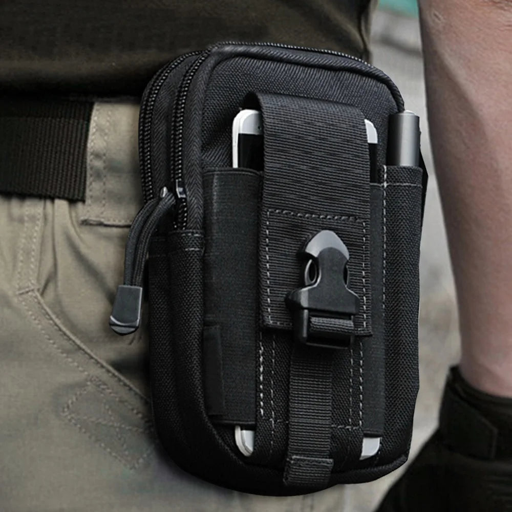 This waist pack is a multifunctional bag designed for men's casual outdoor activities. It is waterproof, features multiple pockets, and has a secure zipper closure.