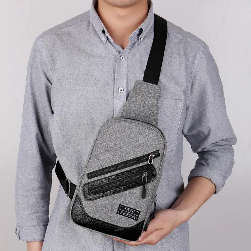 This men's chest messenger bag is ideal for travel, hiking, and everyday use. Made of waterproof Oxford material, it offers durability and style.